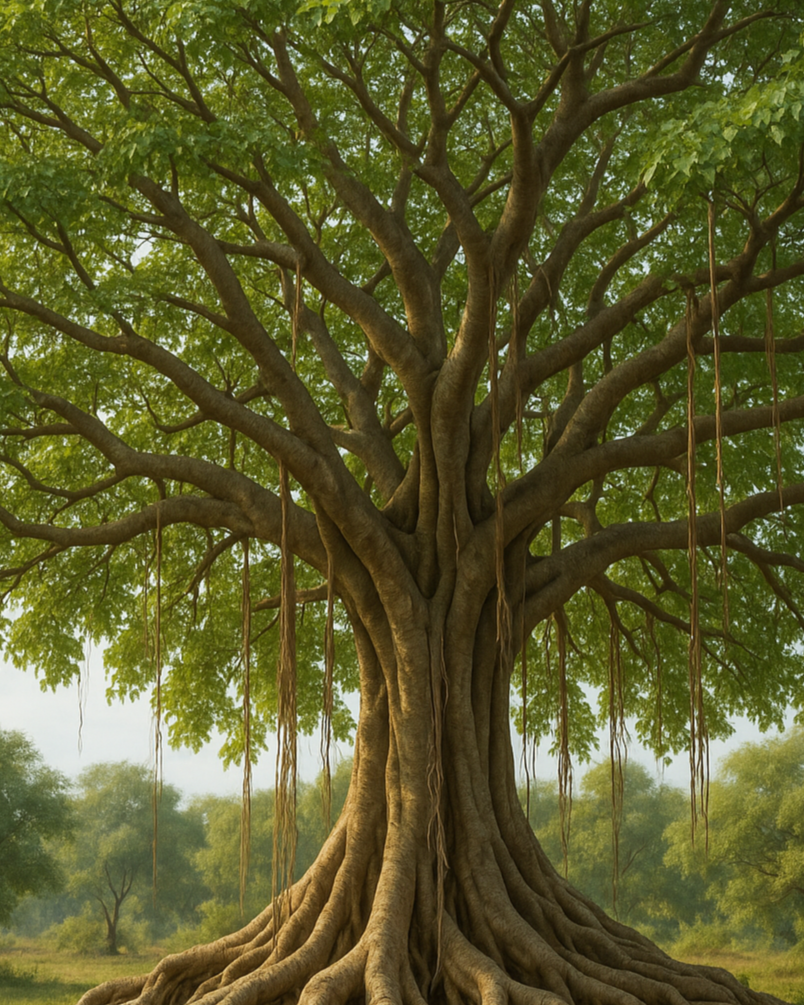 Thriving: The Bodhi Tree’s lush canopy and descending aerial roots symbolize the ongoing cycle of growth and reinvestment. As you cultivate your own growth, you’ll tap into a deeper sense of purpose, quiet the ego, and foster equanimity—the ability to stay steady amidst life’s fluctuations.